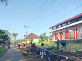 Gotong Royong di Dusun Darungan, Babinsa Barat Bersama Warga Bersihkan Selokan