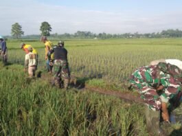 Dukung Ketahanan Pangan, Babinsa Bersama Poktan Karya Tani II Siapkan Lahan Tanam Padi
