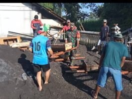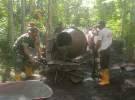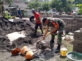 Peduli Infrastruktur Desa, Babinsa Bedayutalang Bantu Pengecoran Jalan Dusun Duren