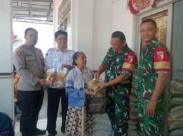 Babinsa dan Bhabinkamtibmas Ditotrunan Kompak Amankan Pembagian Bantuan Pangan