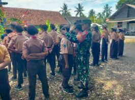 Personel Koramil Tempursari Latih PBB Anggota Pramuka Pada Persami di Pantai...