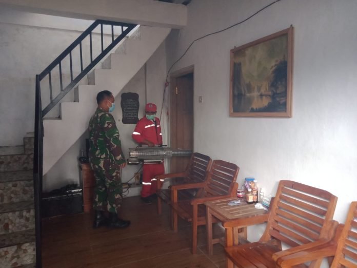 Lumajang, Babinsa Condro Koramil 0821/08 Pasirian Serda Joko Pramono, melaksanakan pendampingan kegiatan fogging yang bertempat di Dusun Krajan RT 001 RW 001 Desa Condro, Kecamatan Pasirian, Kabupaten Lumajang, Jawa Timur, pada hari Selasa (14/5/2024). Kegiatan ini dilakukan sebagai upaya untuk memutus mata rantai berkembangnya sarang nyamuk, khususnya nyamuk Aedes aegypti penyebab demam berdarah dengue (DBD).