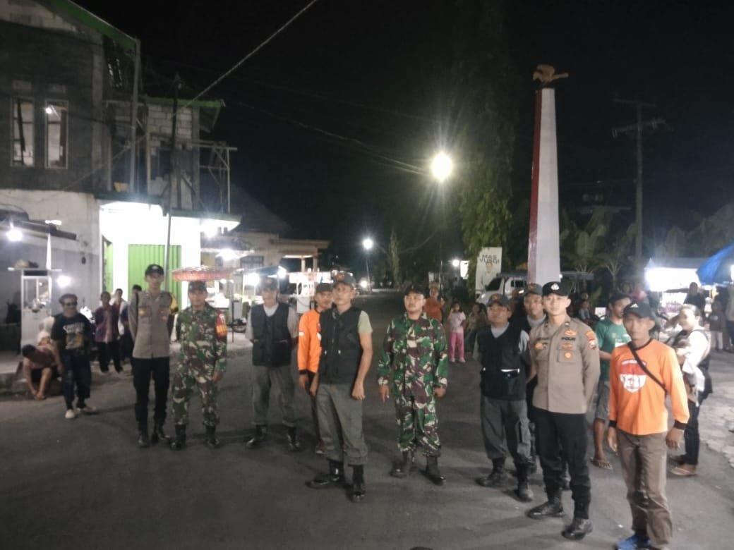 Babinsa dan Bhabinkamtibmas Tempursari Bersama Linmas dan Relawan Rescue Laksanakan Patroli Preventif Pasar Malam