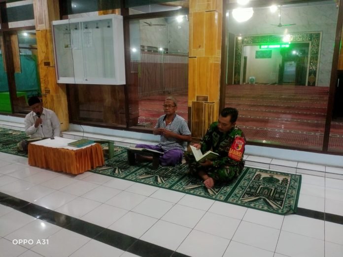 Lumajang, Dalam upaya memperkuat hubungan yang harmonis dengan warga binaan, Babinsa Gondoruso dari Koramil 0821/08 Pasirian, Sertu Dimas Ariyoso, menggelar kegiatan silaturahmi dengan tadarus bersama di Masjid Jami' Al Ikhlas, Dusun Danurojo Desa Gondoruso Kecamatan Pasirian Kabupaten Lumajang, Jawa Timur, Selasa (2/4/2024).