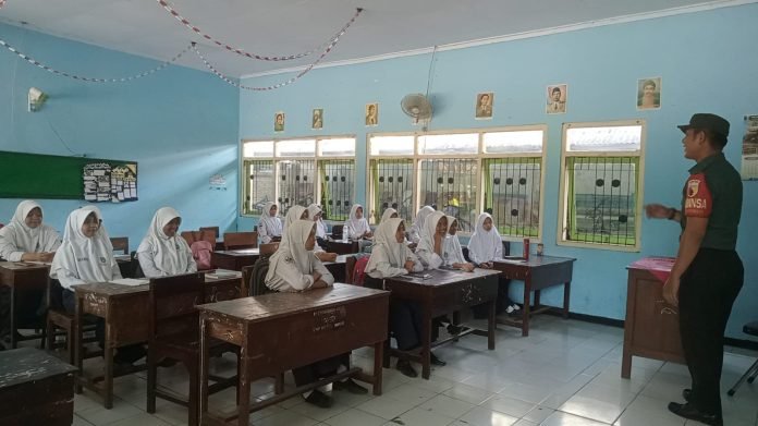 Lumajang, Upaya memupuk semangat mancapai cita-cita siswa, Babinsa Jatimulyo Koramil 0821/13 Kunir Serda Ary Agus Wulandono, melaksanakan kegiatan Wasbang (Wawasan Kebangsaan) kepada siswa kelas IX di SMP Negeri 01 Kunir, Kecamatan Kunir, Kabupaten Lumajang, Jawa Timur, Senin, (6/5/2024).