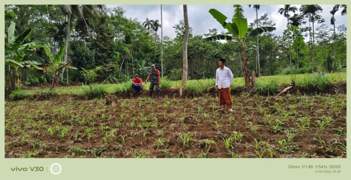 Lumajang, Dalam rangka mendukung pertanian lokal dan meningkatkan produksi jagung di wilayahnya, Babinsa Jeruk koramil 0821/04 Gucialit Sertu Bohari Rahman, melakukan kegiatan pengecekan lahan jagung Hibrida, di Dusun Sidorejo Desa Jeruk Kecamatan Gucialit Kabupaten Lumajang, Jawa Timur, Pada Minggu (21/4/3024).