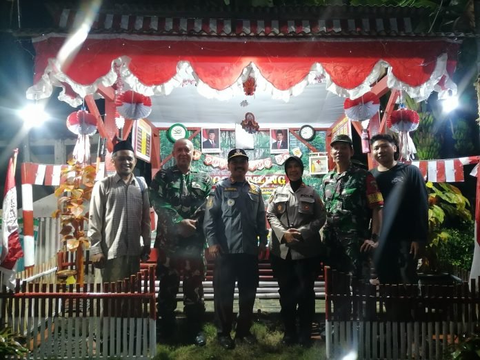 Lumajang, Babinsa Karanganom Koramil 0821-17/Pasrujambe, Sertu Bejo Utomo, dampingi Forkopimcam Pasrujambe dalam kegiatan penilaian lomba Sistem Keamanan Lingkungan (Siskamling) tingkat kecamatan, yang dilaksanakan di Poskamling Dusun Tambakrejo RT 001 RW 007, Desa Karanganom, Kecamatan Pasrujambe, Kabupaten Lumajang, Jawa Timur, Senin (11/8/2025) malam.