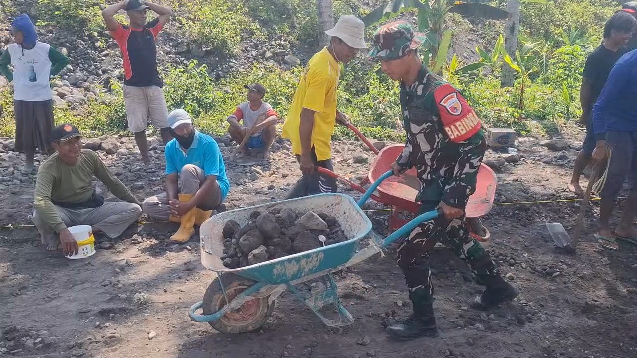 BerandaTNIBabinsa Kloposawit Bangun Kegotongroyongan Warga dalam Perbaikan Jalan Desa