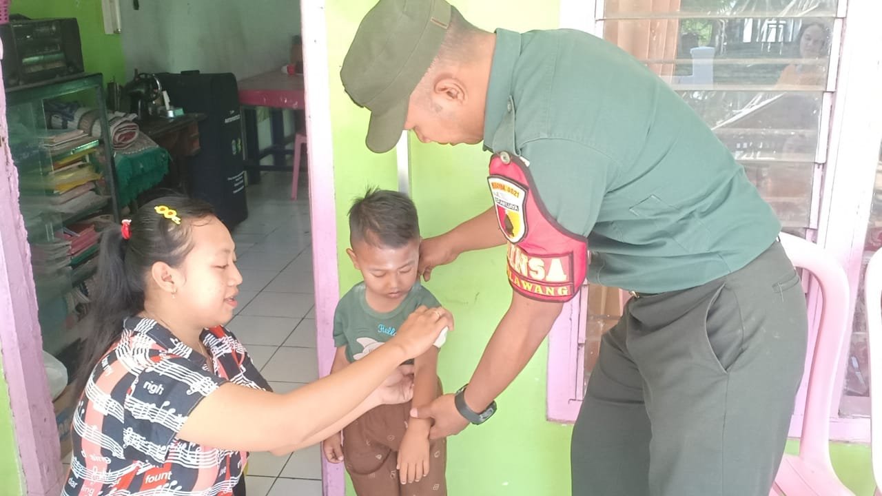 Lumajang, Dalam rangka mendukung program kesehatan nasional, Babinsa Mlawang Koramil 0821-05/Klakah, Sertu Yudiono, melaksanakan kegiatan pendampingan imunisasi di Posyandu Alpukat, Dusun Dawuhan RT 001 RW 007, Desa Mlawang, Kecamatan Klakah, Kabupaten Lumajang, Senin (16/9/2024).