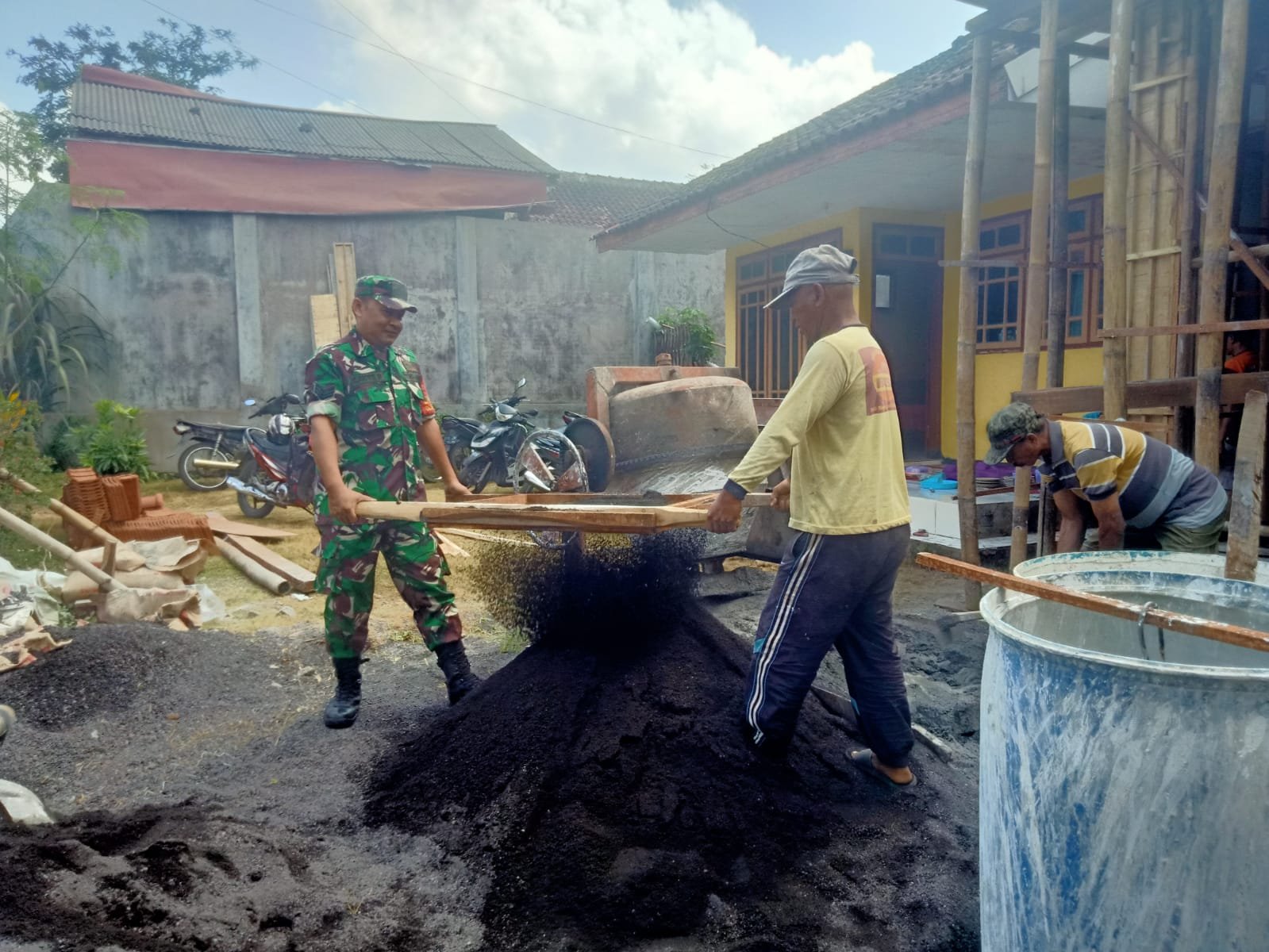 Selain membantu secara fisik, Serka Cahyo juga memanfaatkan kesempatan itu untuk berdialog dengan masyarakat, menyampaikan pentingnya menjaga keamanan lingkungan serta menjaga semangat gotong royong yang menjadi ciri khas desa.