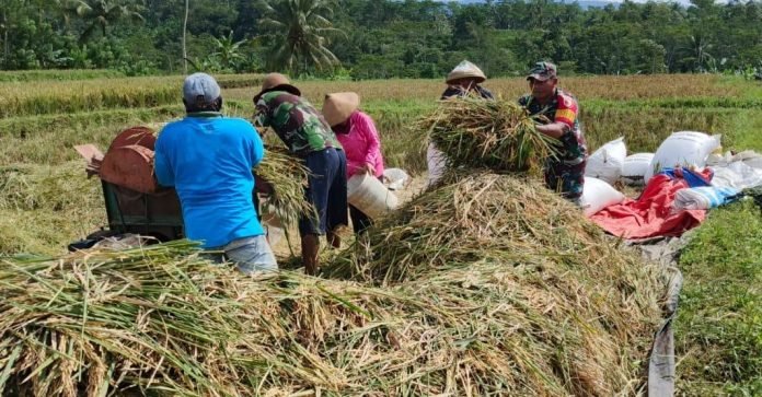Lumajang, Dalam rangka mendukung ketahanan pangan nasional, Babinsa Pandansari Koramil 0821-03/Senduro, Serda Muhammad Triwijayanto, melaksanakan pendampingan kegiatan Serapan Gabah (Sergap) di lahan pertanian milik H. Romli, anggota Kelompok Tani “Tani Makmur, yang berlokasi di Dusun Krajan, Desa Pandansari, Kecamatan Senduro, Kabupaten Lumajang, Jawa Timur, Senin (26/5/2025).