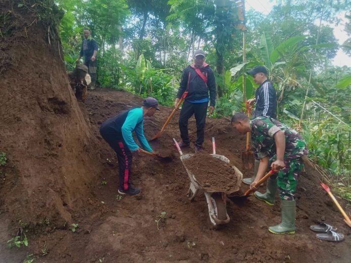 BerandaTNIBabinsa Ranupani Dampingi Kerja Bakti Pelebaran Jalan Setapak di Dusun Sidodadi
