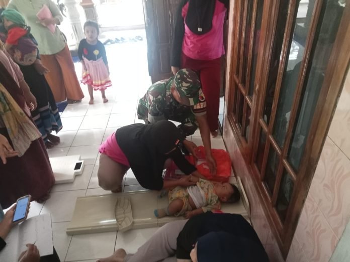 Lumajang, Sebagai bentuk kepedulian terhadap kesehatan ibu dan anak, Babinsa Sruni Koramil 0821-05/Klakah Serka Muhammad Nimin turut serta dalam kegiatan monitoring Posyandu Balita di Dusun Curah Pakem RT 015 RW 008 Desa Sruni Kecamatan Klakah Kabupaten Lumajang Jawa Timur, pada Senin (3/3/2025).