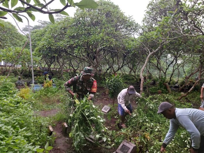 “Saya bersama Kepala Desa mengajak masyarakat untuk peduli terhadap kebersihan makam, guna memberikan kenyamanan bagi warga peziarah,” ujar Koptu Nyono.