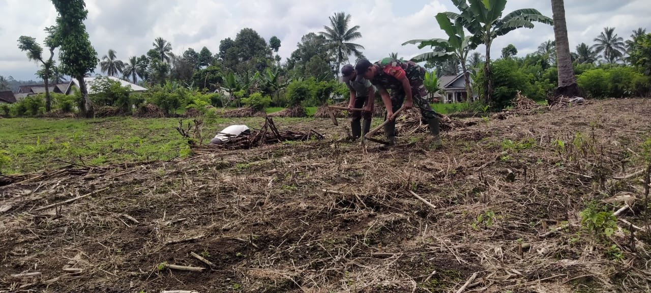 Dalam pendampingan itu, Babinsa tidak hanya memberikan bantuan teknis dan petunjuk, tetapi juga secara aktif terlibat dalam proses penyiapan lahan bersama petani setempat.