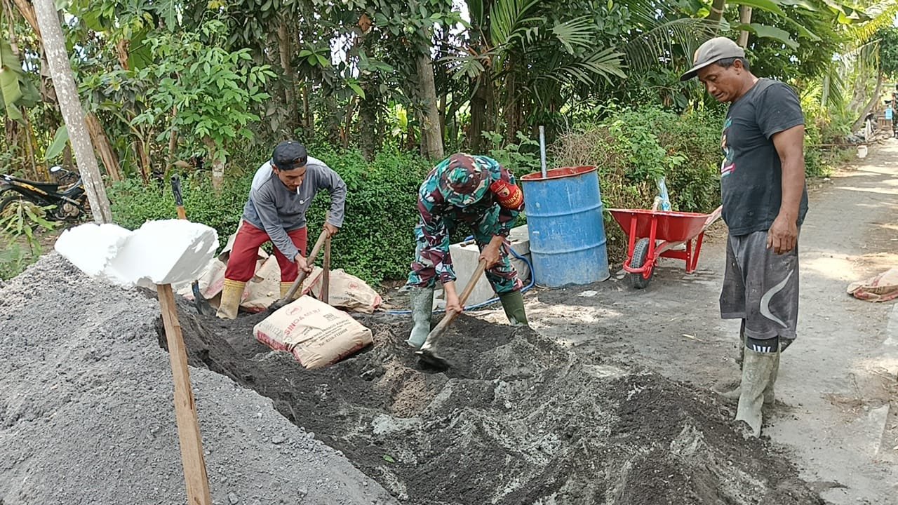 Lumajang, Babinsa Sumbersuko Koramil 0821/19 Sumbersuko Serda Warsono Efendi melaksanakan gotong royong pembuatan saluran drainase bersama warga binaan, yang berlokasi di Dusun Suko 1 RT 002 RW 004 Desa Sumbersuko Kecamatan Sumbersuko Kabupaten Lumajang, Jawa Timur, Kamis (4/1/2024).