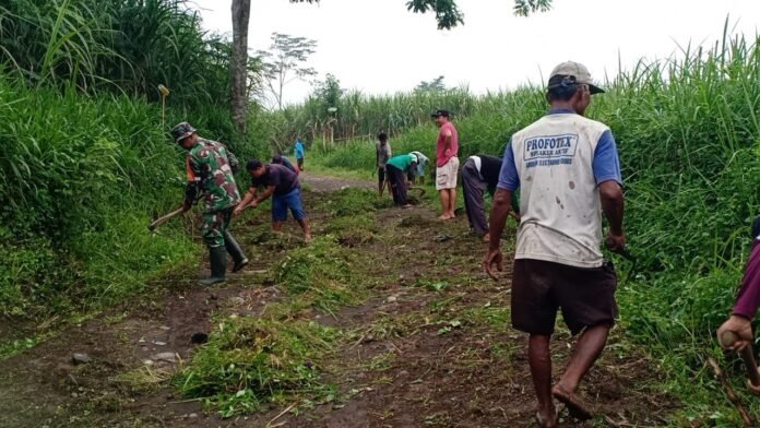 Lumajang – Sebagai wujud pembinaan teritorial wilayah. Babinsa Yosowilangun Kidul Koramil 0821-11/Yosowilangun, Serda Agus Efendi, turun langsung bersama warga melaksanakan kerja bakti pembersihan kanan kiri jalan di Dusun Kebonan RT 003 RW 007 Desa Yosowilangun Kidul, Kecamatan Yosowilangun, Kabupaten Lumajang, Jawa Timur, pada Minggu (15/2/2026).