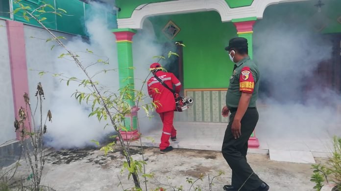 Dalam kesempatan itu, Serda Yudik menuturkan kegiatan fogging ini dilakukan sebagai pencegahan terhadap penyebaran penyakit demam berdarah, dengan langka membunuh nyamuk dewasa untuk berkembang biak.