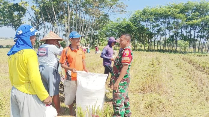 Beri Motivasi, Babinsa Klampokarum Dampingi Warga Petani Panen Padi