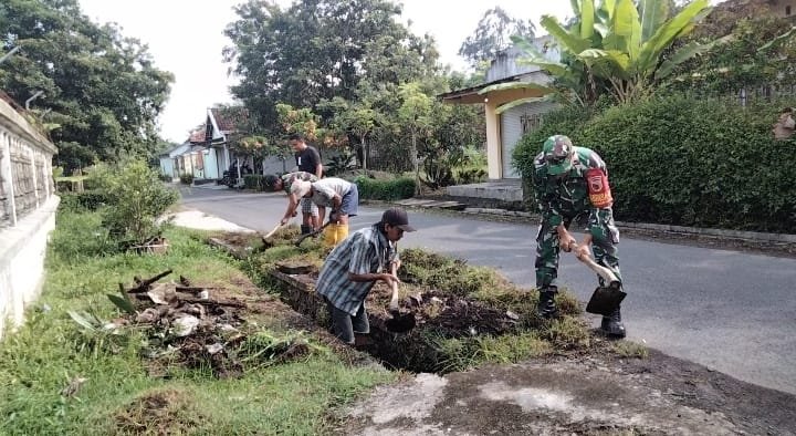 BerandaTNIBersih Lingkungan, Babinsa Kebonsari Dampingi Warga Kerja Bakti Bersama
