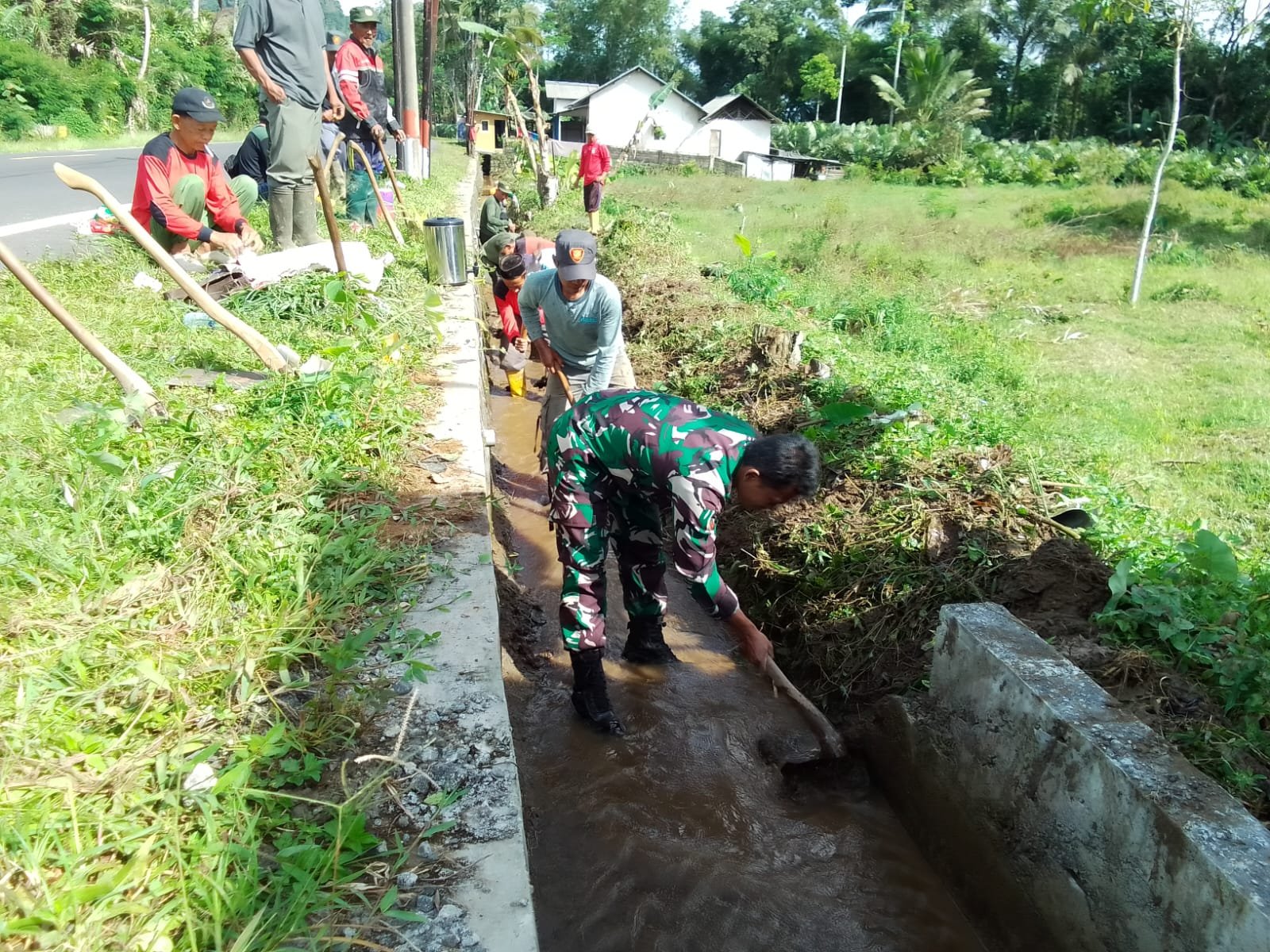 Lumajang, Dalam upaya meningkatkan kebersihan lingkungan dan mencegah banjir saat musim penghujan, Babinsa Sumberurip Koramil 0821-14/Pronojiwo, Koptu M. Arif Wibowo, bersama Pemerintah Desa dan 25 anggota Perlindungan Masyarakat (Linmas), melaksanakan kerja bakti normalisasi saluran drainase di RT 002 RW 005 Dusun Sriti, Desa Sumberurip, Kecamatan Pronojiwo, Kabupaten Lumajang, Jawa Timur, Jumat (20/6/2025).