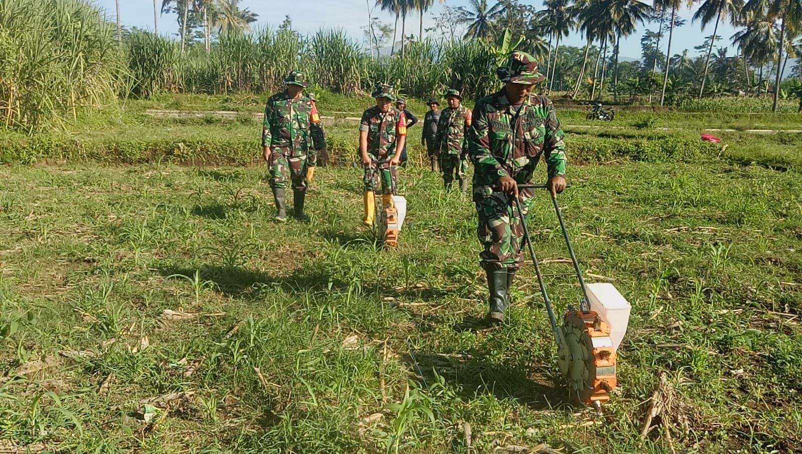 Lumajang, Babinsa Sarikemuning Koramil 0821/03 Senduro, Serda M. Triwijayanto, memberikan dukungan aktif dalam upaya peningkatan produksi jagung di wilayahnya, turut serta dalam pendampingan pertanian dengan melakukan penanaman benih jagung seluas 1 hektar di lahan milik Bapak Yudi, anggota kelompok tani Sumber Makmur, Dusun Maduran Desa Sarikemuning  Kecamatan Senduro Kabupaten Lumajang, Jawa Timur, Minggu (12/5/2024)