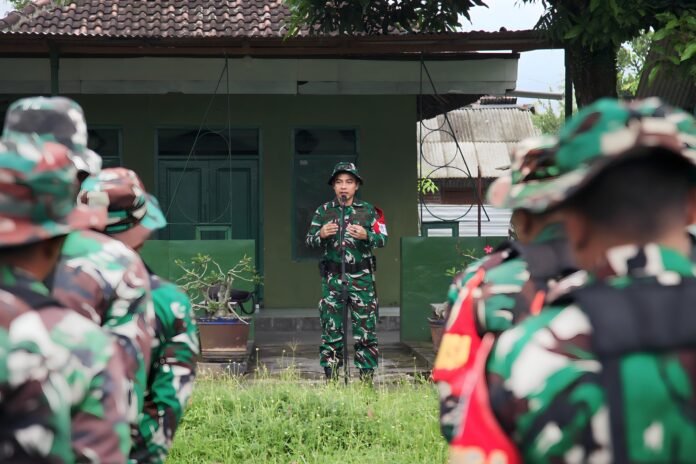 Lumajang — Komandan Kodim 0821/Lumajang, Letkol Arh Anton Subhandi, S.A.P., M.I.P., mengambil apel kepada anggota Kodim 0821/Lumajang yang sedang melaksanakan Latihan Perorangan Dasar (Latorsar) Aparat Teritorial TA 2026. Kegiatan tersebut berlangsung di sekitar Rumah Dinas (Rumdis) Rowobujel Kodim 0821/Lumajang, Kamis (22/1/2026).