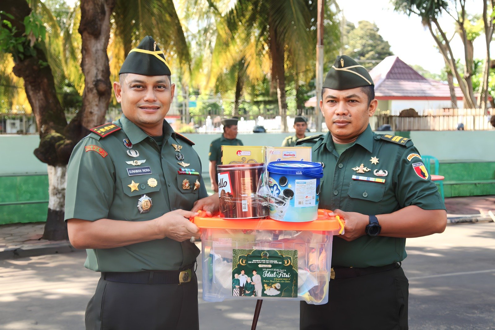 “Penyerahan bingkisan ini merupakan bentuk kepedulian dan apresiasi dari pimpinan kepada seluruh anggota militer dan PNS, terkait Hari Raya Idul Fitri yang sebentar lagi akan dirayakan oleh umat Islam,” ungkap Dandim.