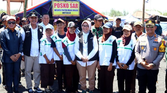 Lumajang, Dalam suasana libur Lebaran yang masih berlangsung, Bupati Lumajang Ir. Hj. Indah Amperawati, M.Si bersama jajaran Forum Koordinasi Pimpinan Daerah (Forkopimda) Kabupaten Lumajang melaksanakan kunjungan kerja ke Pantai Wisata Wotgalih, Kecamatan Yosowilangun, Senin (H+7 Idulfitri). Kegiatan ini dilakukan sebagai bentuk kepedulian pemerintah daerah terhadap keselamatan dan kenyamanan para wisatawan yang memadati kawasan wisata, Senin (7/4/2025).