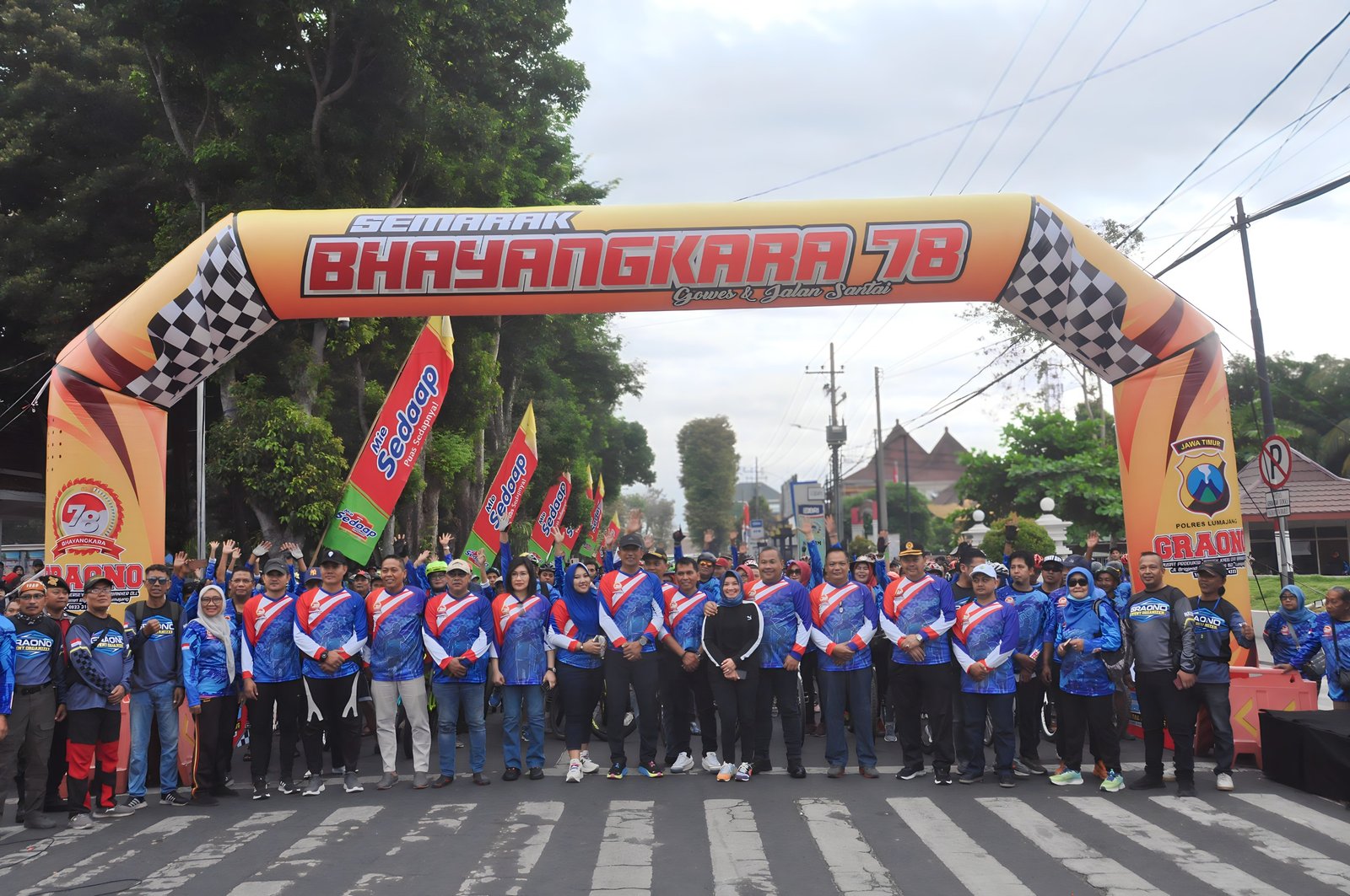 Dalam suasana yang penuh semangat dan kebersamaan, acara tersebut diikuti oleh ribuan peserta yang terdiri dari anggota TNI, Polri, ASN, dan masyarakat umum. Gowes dan jalan sehat ini mengambil rute mengelilingi kota Lumajang, dengan start dan finish di Alun-Alun Lumajang.