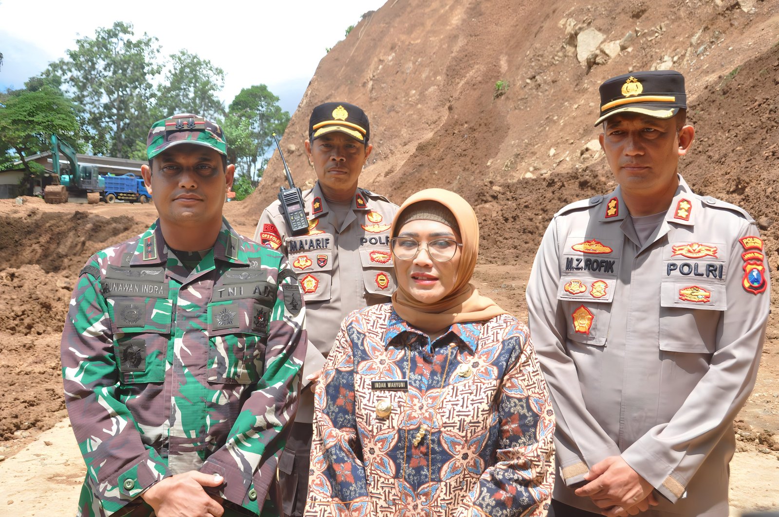 Lumajang, Dandim 0821/Lumajang letkol Czi Gunawan Indra Y. T., S.T., M.M., bersama Pj. Bupati Lumajang Indah Wahyuni, S.H., M.Si., dan Kaporles Lumajang AKBP Mohammad Zainur Rofik S.I.K., meninjau beberapa lokasi terdampak bencana alam tanah longsor dan banjir diwilayah Kabupaten Lumajang Jawa Timur, Jumat (19/4/2024)
