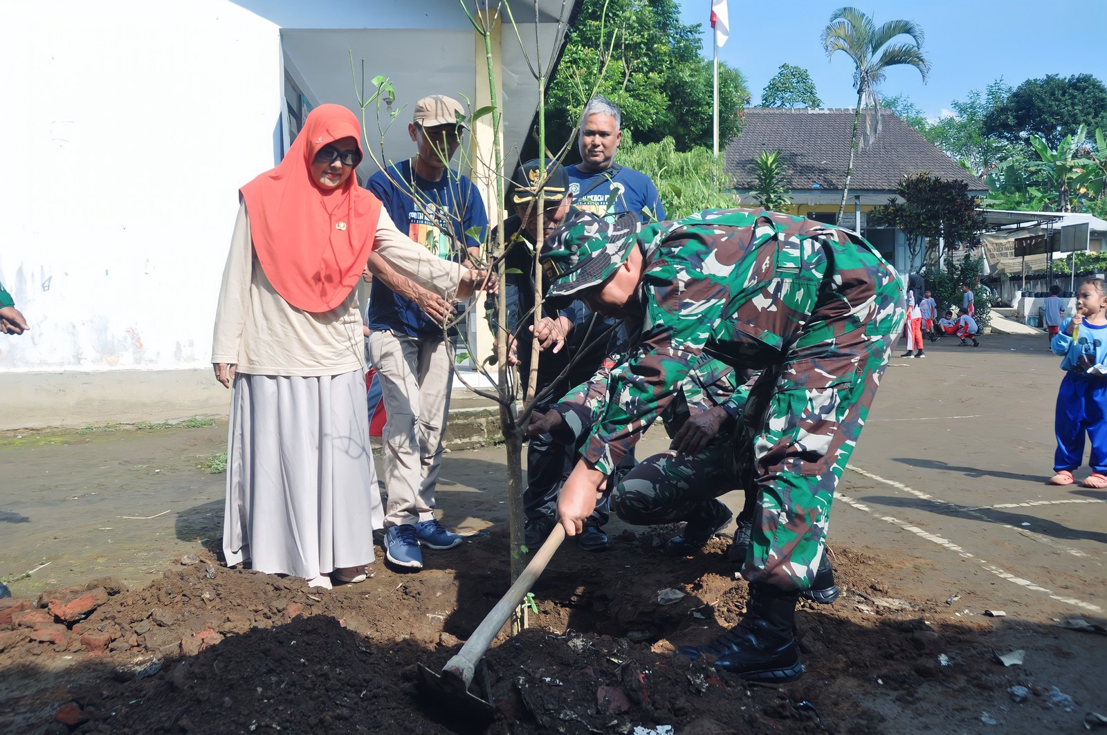 Lumajang, TMMD ke-123, Penyuluh Lingkungan Hidup Dinas Lingkungan Hidup (DLH) Kabupaten Lumajang, Agus Priyo Santoso, S.P., turut serta menyukseskan program TNI Manunggal Membangun Desa (TMMD) ke-123 yang dilaksanakan oleh Kodim 0821/Lumajang. Kegiatan ini diwujudkan melalui aksi penanaman pohon Pule dan Tabebuya di lokasi TMMD di Desa Burno, Kecamatan Senduro, Kabupaten Lumajang, pada Jumat (21/2/2025).