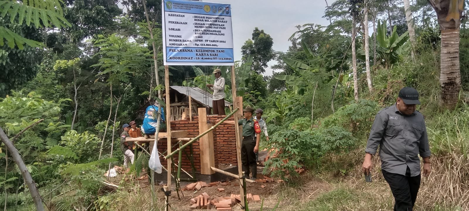 Lumajang, Dalam rangka mendukung upaya peningkatan produktivitas pertanian, Danposramil 0821/05 Kedungjajang, Peltu Cahyo Purnomo, melaksanakan pendampingan dalam kegiatan pengecekan pembangunan tempat pompanisasi pengairan di Dusun Mrutu, Desa Pandansari, Kecamatan Kedungjajang, Kabupaten Lumajang, Jawa Timur, pada Selasa (21/5/2024).