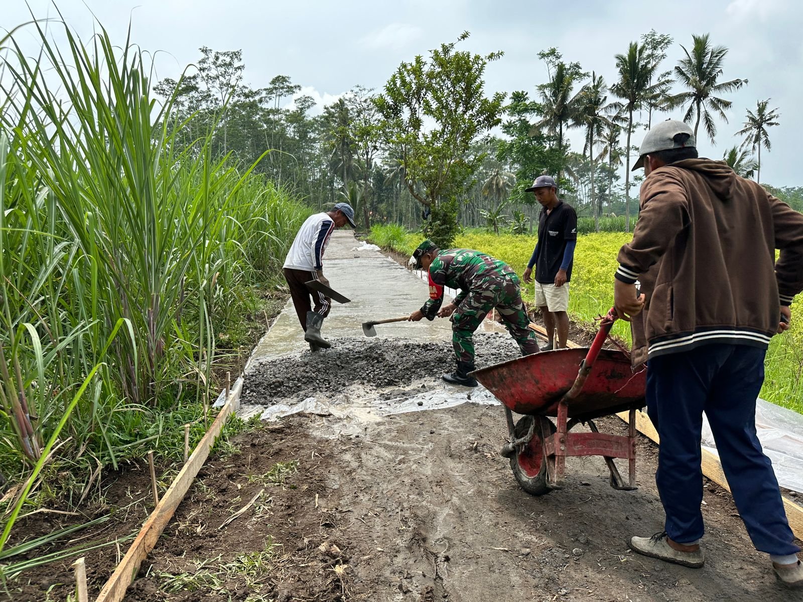 BerandaTNIDukung Program Desa, Babinsa Ranupakis Kawal Pembangunan Jalan Rabat Beton