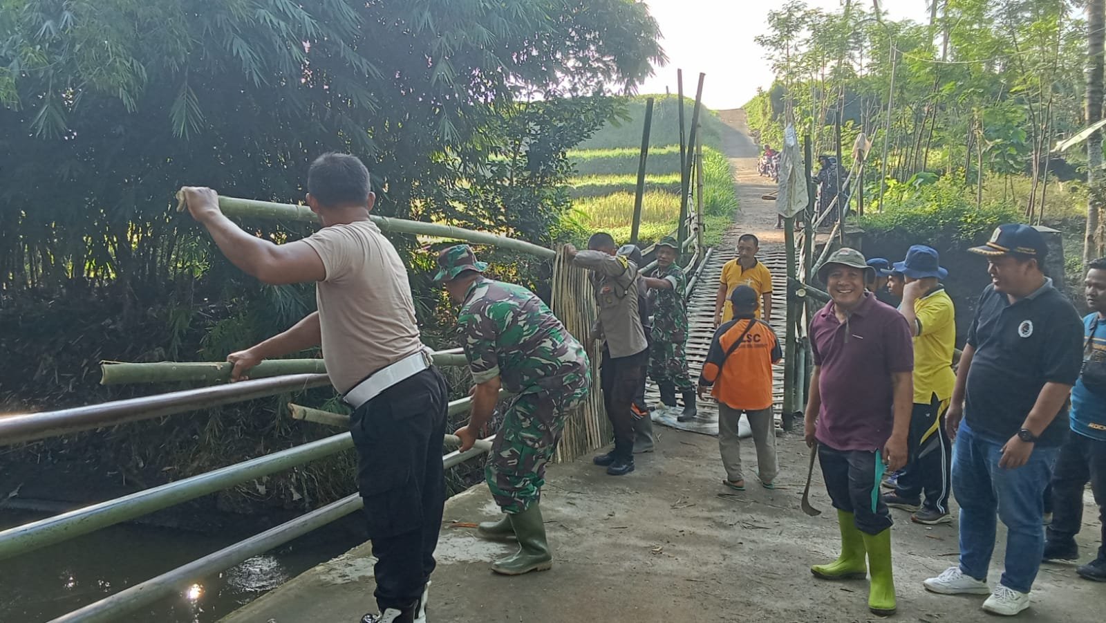 Lumajang, Dalam momen bersejarah Hari Kesiapsiagaan Bencana Nasional tanggal 26 April lalu, Forkopimcam Padang bersama stakeholder dalam pembuatan jembatan darurat. Kegiatan ini dilaksanakan sebagai pengganti sementara jembatan Sumber Wadung Desa Babakan, Kecamatan Padang, Kabupaten Lumajang, Jawa Timur, pada Senin, (29/4/2024).