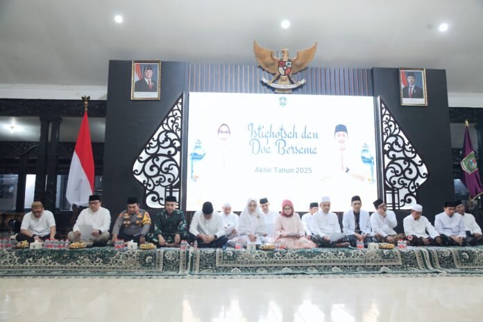 Lumajang — Forum Koordinasi Pimpinan Daerah (Forkopimda) Kabupaten Lumajang menggelar kegiatan Istiqhotsah dan Doa Bersama dalam rangka menutup akhir Tahun 2025, bertempat di Pendopo Kabupaten Lumajang, Rabu (31/12/2025) malam. Kegiatan ini menjadi momentum refleksi sekaligus ikhtiar spiritual bersama demi keselamatan, kedamaian, dan kemajuan Lumajang di tahun yang akan datang.