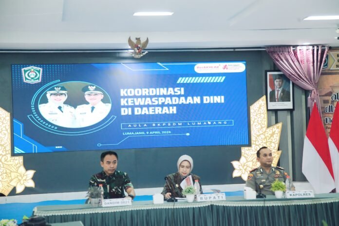 Lumajang – Pemerintah Kabupaten Lumajang bersama unsur Forkopimda menggelar Rapat Koordinasi Kewaspadaan Dini Daerah sebagai langkah strategis dalam menjaga stabilitas keamanan dan ketertiban masyarakat (kamtibmas), bertempat di Aula BKPSDM Kabupaten Lumajang, Kamis (9/4/2026).