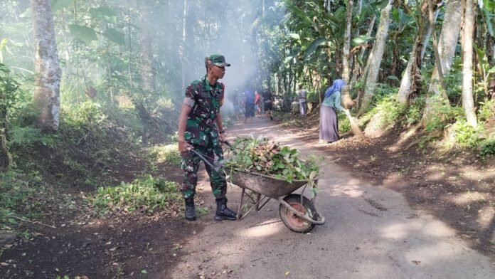 Lumajang, Wujud nyata kepedulian terhadap lingkungan kembali ditunjukkan oleh Babinsa Penawungan Koramil 0821-06/Ranuyoso, Kopda Zaenal Arifin. Bersama warga, ia melaksanakan kerja bakti pembersihan jalan di kanan kiri Dusun Curah Bindu RT 002 RW 001 Desa Penawungan, Kecamatan Ranuyoso, Kabupaten Lumajang, Jawa Timur, pada Senin (8/9/2025).