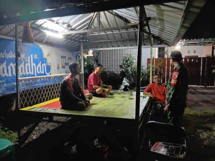Lumajang – Dalam rangka menjaga situasi keamanan dan ketertiban masyarakat menjelang Hari Raya Idul Fitri, Babinsa Labruk Koramil 0821-01/Lumajang Serka Darsono melaksanakan kegiatan patroli malam dengan menyambangi pos keamanan lingkungan (poskamling) di Dusun Krajan RT 002 RW 006 Desa Labruk Lor, Kecamatan Lumajang, Kabupaten Lumajang, Jawa Timur, Rabu (11/3/2026).