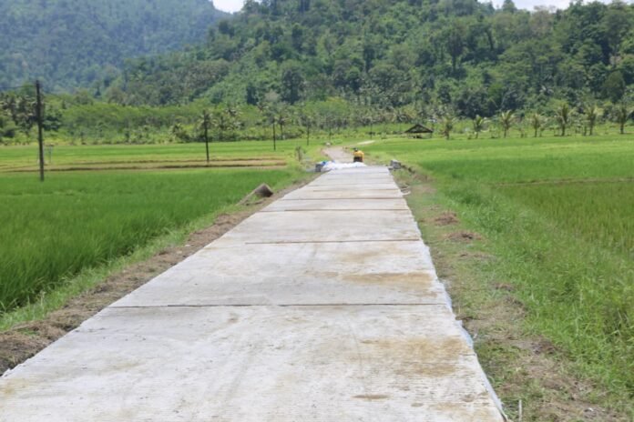 Jalan yang sebelumnya berupa tanah dan sulit dilalui, terutama saat musim hujan, kini berubah menjadi jalur beton yang kuat dan nyaman. Pembangunan ini menjadi solusi bagi warga yang selama ini kesulitan membawa hasil pertanian maupun melakukan aktivitas ekonomi antarwilayah.