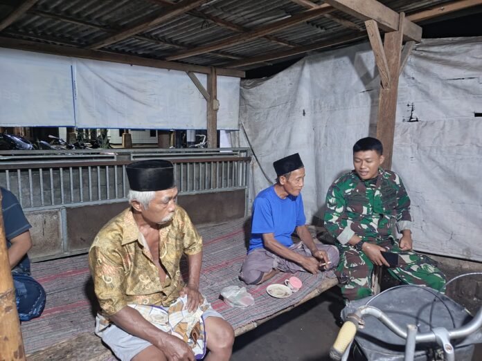 Lumajang, Upaya mempererat silaturahmi dan menjaga kedekatan dengan masyarakat dalam kegiatan komunikasi sosial (Komsos), Babinsa Kebonsari Koramil 0821-19/Sumbersuko, Serda Agus Waskito, bersama warga Dusun Sari Rejo II RT 024 RW 003, Desa Kebonsari, Kecamatan Sumbersuko, pada Kamis (26/11/2025) malam.