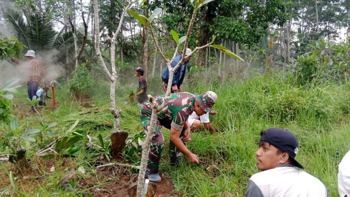 Lumajang, Babinsa Sawaran Lor Koramil 0821/05 Klakah, melaksanakan kerja bakti pembersihan pemakaman umum bersama warga binaan bertempat di TPU Desa Sawaran Lor Kecamatan Klakah Kabupaten Lumajang, Jawa Timur, Senin (11/3/2024).