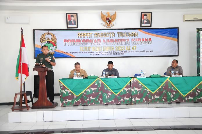 “Peran anggota merupakan kunci utama untuk mengembangkan koperasi dengan di hadapkan kondisi krisis globalisasi ekonomi yang sedang mengguncang negara kita, Kegiatan RAT ini mempunyai fungsi yang sangat strategis karena akan membahas tentang hasil dan rencana anggaran belanja tahun 2024,” ujar Kasdim.