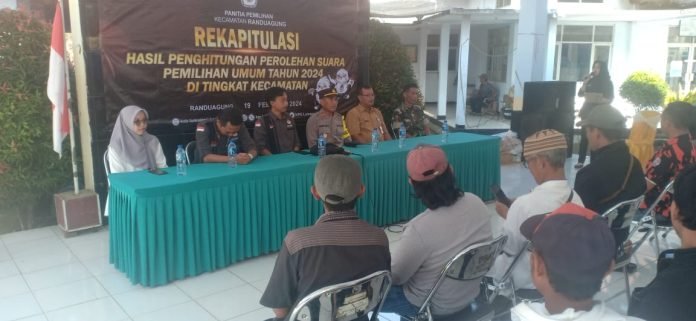 Lumajang, Sejumlah stakeholder Randuagung, menggelar pengamanan tahapan rekapitulasi hasil penghitungan pasca pemungutan suara Pemilu 2024, dilaksanakan oleh petugas PPK, di Pendopo Kecamatan Randuagung Kabupaten Lumajang, Jawa Timur, Senin (19/2/2024).