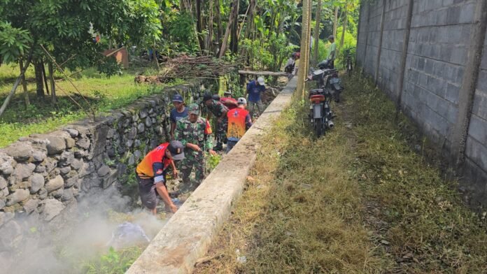 Lumajang – Wujud kepedulian terhadap kebersihan lingkungan, Babinsa Kunir Lor Koramil 0821-13/Kunir, Sertu Harianto Dwi Cahyono, turut terjun langsung bersama warga dalam kegiatan kerja bakti pembersihan saluran irigasi sepanjang 900 meter yang berada di Dusun Sentul RW 04 Desa Kunir Lor, Kecamatan Kunir, Kabupaten Lumajang, Jawa Timur, pada Senin (20/4/2026).
