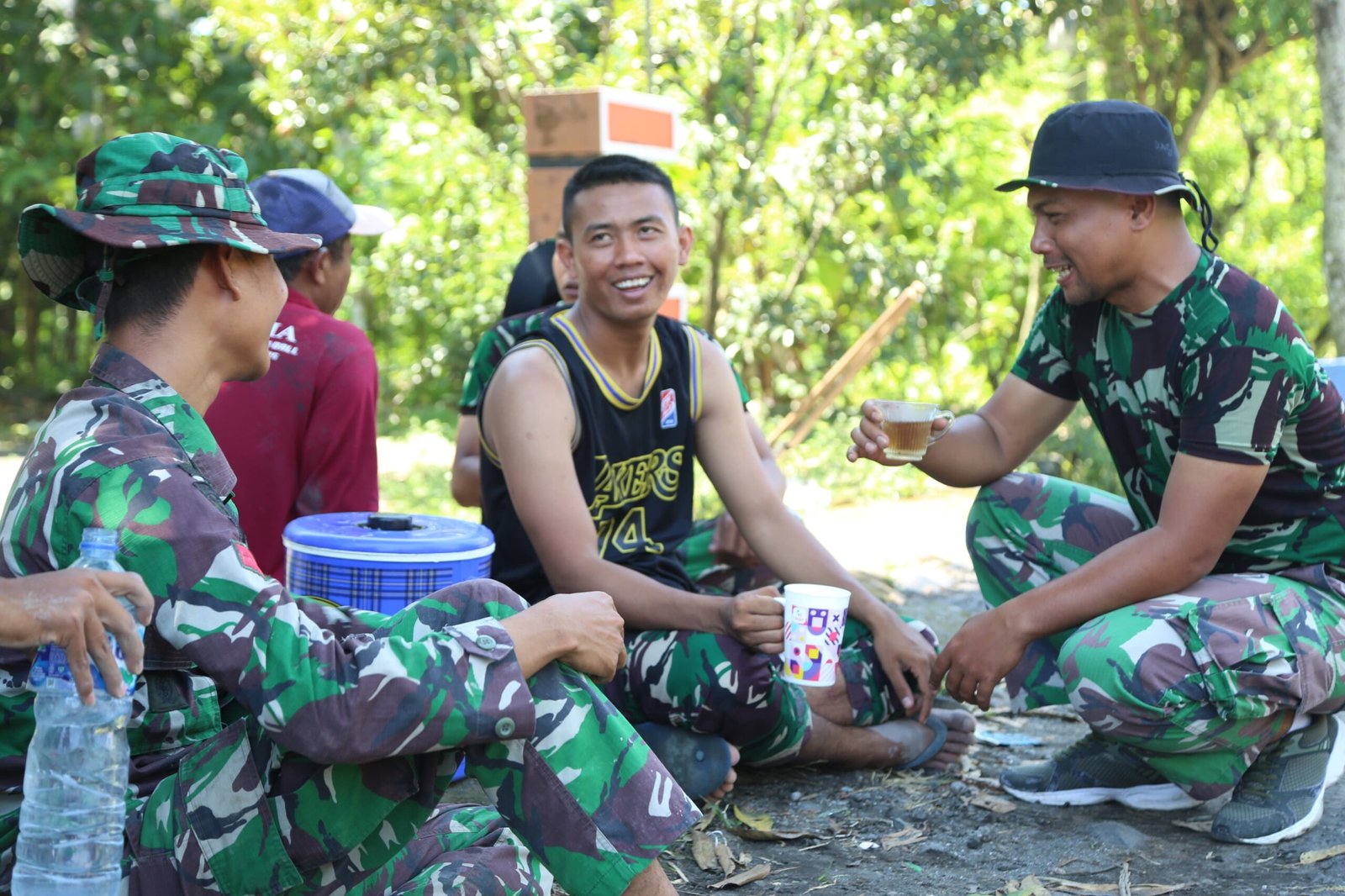 Meski tugas yang diemban berat, semangat dan keceriaan para prajurit tetap terjaga. Tawa ringan dan obrolan hangat di sela istirahat menjadi penyemangat tersendiri bagi mereka sebelum kembali melanjutkan pekerjaan.