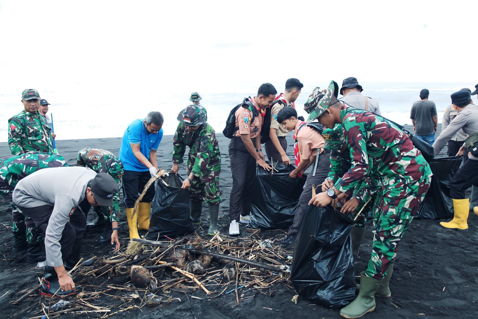 Lumajang – Forkopimda Kabupaten Lumajang melaksanakan kegiatan Karya Bhakti terpadu pembersihan sampah laut dalam rangka mendukung program Presiden Republik Indonesia “Gerakan ASRI (Aman, Sehat, Resik dan Indah)”, yang berlangsung di kawasan obyek wisata Pantai Watu Pecak, Desa Selok Awar-Awar, Kecamatan Pasirian, Kabupaten Lumajang. Kegiatan tersebut melibatkan sekitar 750 orang terdiri dari personel TNI, Polri, Pemerintah Daerah serta elemen masyarakat, dan dipimpin oleh Kasdim 0821/Lumajang Mayor Inf Tanuri.