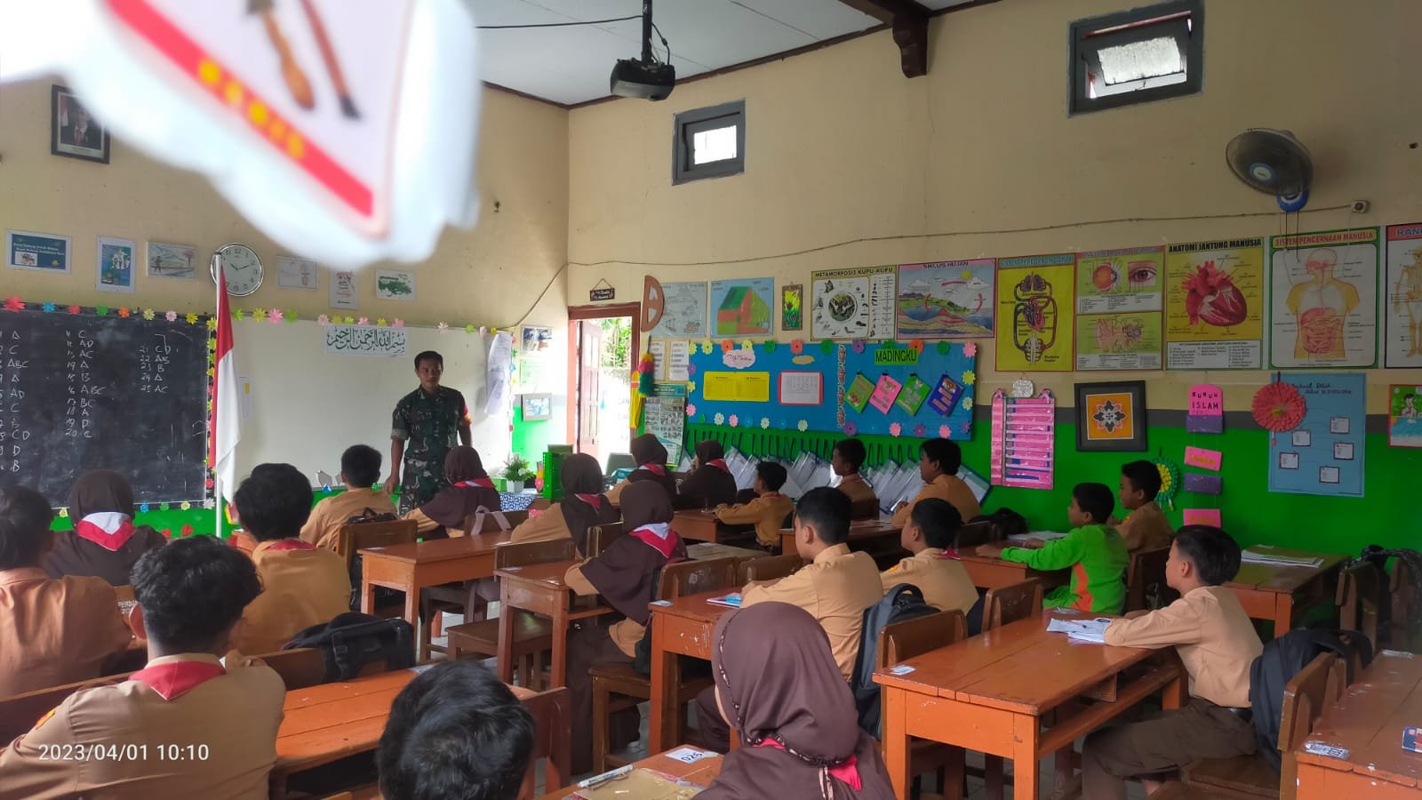 Lumajang, Sebagai upaya intensitas Babinsa Masuk Sekolah, Babinsa Pandanarum Koramil 0821/10 Tempeh Serma Hendrik Setiawan, melaksanakan pemberian materi wawasan kebangsaan (Wasbang), kepada Siswa SD Negeri Pandanarum 01 Kecamatan Tempeh Kabupaten Lumajang, Jawa Timur, Sabtu (3/3/2024).