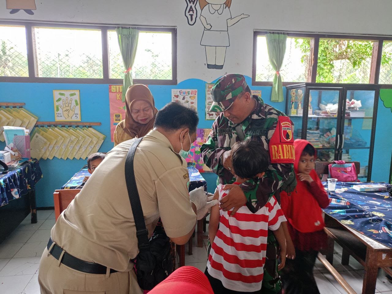 “Babinsa selalu siap mendukung kegiatan yang berkaitan dengan kesehatan masyarakat. Pendampingan ini juga bertujuan memberikan rasa aman dan nyaman kepada siswa serta orang tua mereka selama proses imunisasi berlangsung,” kata dia.