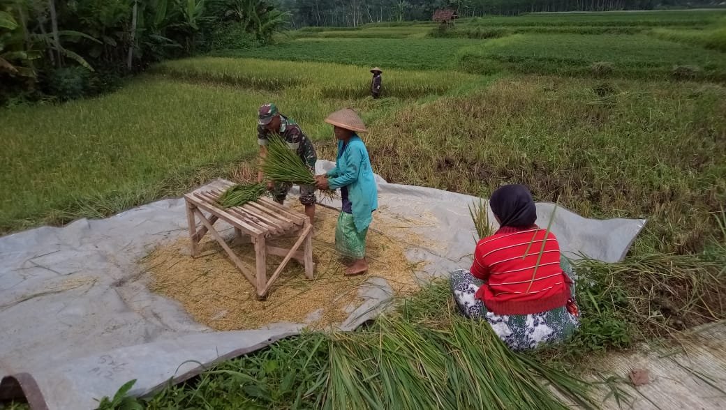 Lumajang, Babinsa Pandansari Koramil 0821-03/Senduro, Serda Ignasius Lede Ngongo, memberikan pendampingan dalam kegiatan panen padi di lahan seluas 0,5 hektare milik Tinar, anggota Kelompok Tani (Poktan) Gempol Makmur Desa Pandansari, Kecamatan Senduro, Kabupaten Lumajang, Jawa Timur, pada Rabu (8/1/2025).